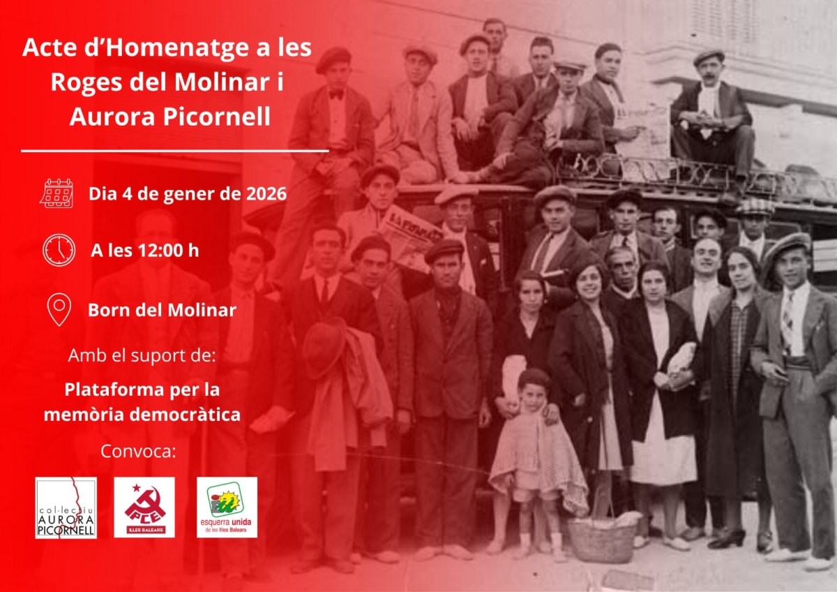 Diumenge 4 de gener ens trobarem amb diversos col·lectius i la plataforma memòria democràtica, per retre homenatge a n’Aurora Picornell, en el 89è aniversari del seu assassinat el 5 de gener del 1937
